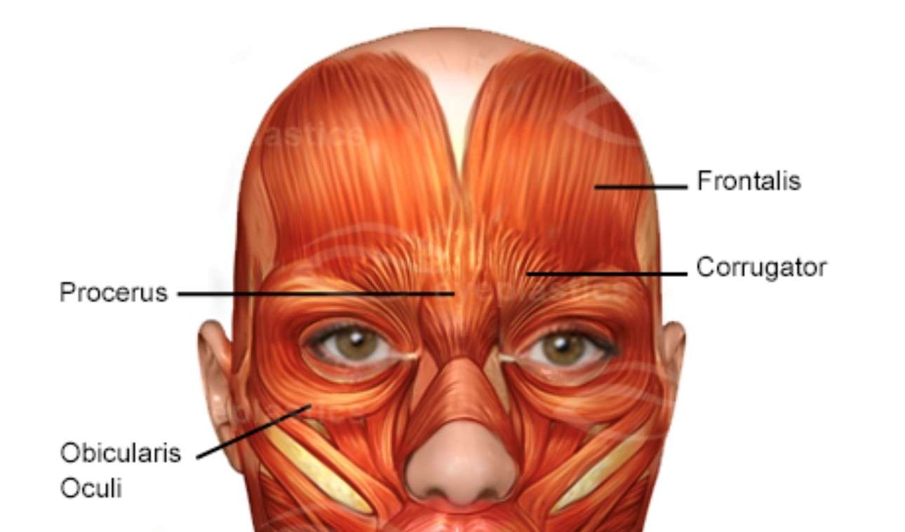 Procerus and Corrugator – the glabellar area which consists of procerus right in the centre of the nasal bridge and the corrugators that sit to either side of procerus.